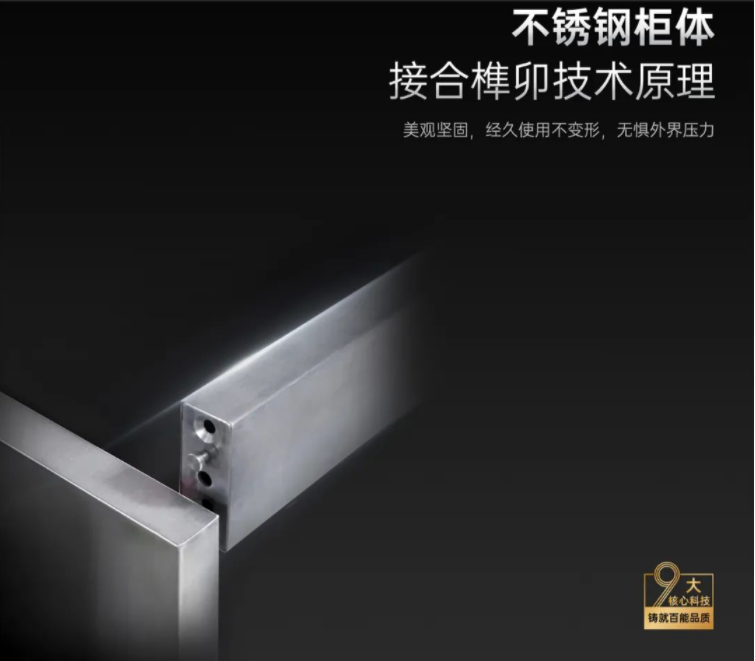 而且经过不锈钢榫卯结构连接的柜体,通过精巧的力学设计,让各个部件相互制约,其随着时间的推移越受力反而能越牢固。成为百能全钢橱柜50年耐用的支撑保障。