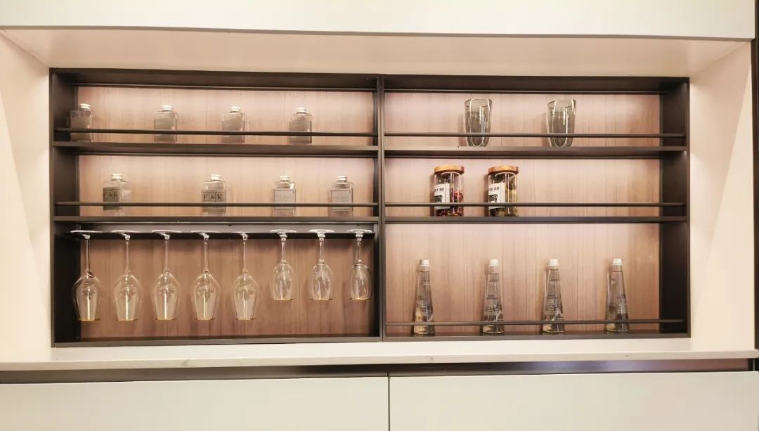 除此之外,餐边柜的中柜与橱柜的储物抽屉分别运用了幻影柚木与科迪桃木两大温润木色,赋予了更多的自然活力,创造出独特而有品质的空间。